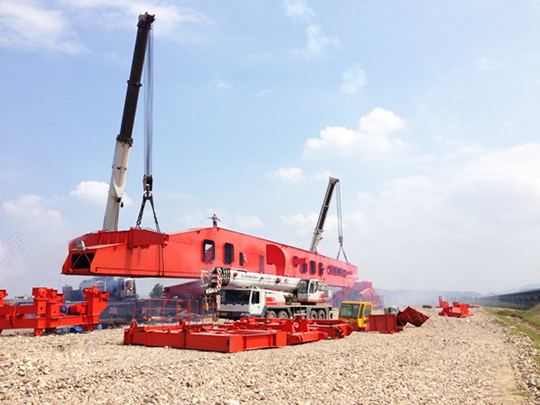 公司主要設(shè)備有:SLJ900T流動(dòng)式運(yùn)架一體機(jī)、SXJ900T/32M分體式架橋機(jī)及運(yùn)梁車(chē)、MG450T提梁機(jī)(跨度有35M~40M,起升凈高20~40M)、ME900T提梁機(jī)、SXJ550T/32M一跨式架橋機(jī)及運(yùn)梁車(chē)、SGTJ180T鋪架機(jī)等高鐵運(yùn)架設(shè)備。